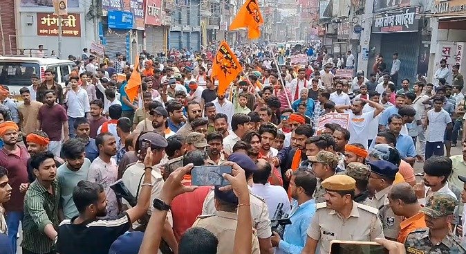 मुजफ्फरपुर में मंदिर तोड़े जाने के विरोध में सड़कों पर उतरे हजारों प्रदर्शनकारी