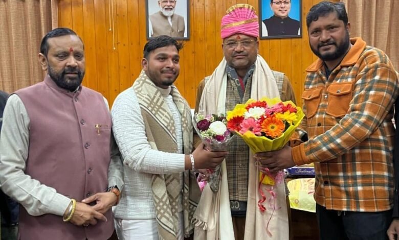 देहरादून 20 फरवरी। राष्ट्रीय वाल्मिकी क्रांतिकारी मोर्चा ने नवनिर्वाचित महापौर सौरभ थपलियाल का पुष्पगुच्छ एवं पगड़ी पहना कर स्वागत कियाl पूर्व राज्यमंत्री एवं मोर्चा के राष्ट्रीय अध्यक्ष भगवत प्रसाद मकवाना के नेतृत्व में काफी संख्या में समाज के लोग मेयर सौरभ थपलियाल को उनके नगर निगम स्थित कार्यालय में बधाई देने पहुंचे l मोर्चा की ओर से मेयर श्री थपलियाल को शॉल एवं पगड़ी पहनाई एवं महर्षि वाल्मीकि का चित्र भी भेंट किया l इस अवसर पर मोर्चा के राष्ट्रीय उपाध्यक्ष राजेश राजोरिया, प्रदेश कार्यवाहक अध्यक्ष राकेश सिलेलन, प्रदेश प्रमुख महामंत्री मदन वाल्मीकि, प्रदेश मीडिया प्रभारी विनोद घाघट, युवा मोर्चा अध्यक्ष राजीव राजौरी, दौलत मकवाना, महिला मोर्चा उपाध्यक्ष अनिका क्षेत्री, संयम कुमार, शुभम कुमार आदि मौजूद थे l