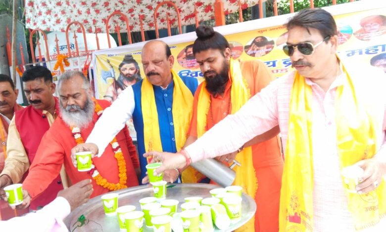 देहरादून। अखिल भारतीय ब्राह्मण महासभा द्वारा आज टपकेश्वर महादेव मंदिर के महंत कृष्णगीरी महाराज, समाजसेवी लाल चंद शर्मा, महासभा के अध्यक्ष मनमोहन शर्मा के द्वारा मंत्रोच्चार के साथ जनहीतार्थ स्थानीय घंटाघर सथित पटेल पार्क पर शीतल जल की टंकी स्थापित कर उद्घाटन किया गया। तत्पश्चात महाराज द्वारा भगवान श्री परशुराम के चित्र पर मीठे शरबत का प्रसाद लगाकर प्रात: 10 बजे से अपरान्ह 5-00 बजे तक हजारों राहगीरों को एलोवीरा मिश्रित मीठे शरबत का वितरण किया गया।इस अवसर पर महंत कृष्णगिरी महाराज ने अखिल भारतीय ब्राह्मण महासभा द्वारा जनहित में किए जा रहे प्रयासों की सराहना करते हुए कहा कि महासभा द्वारा भगवान परशुराम अवतरण दिवस पर नगर के विभिन्न स्थानों पर पांच सौ वृक्षों का रोपण किया गया। बाद में भगवान परशुराम चौक पर शीतल जल की टंकी की स्थापना की गई। इसी क्रम में आज दूसरी शीतल जल की टंकी की स्थापना घंटाघर पटेल पार्क में की गई। इसी तरह महासभा की ओर से तीन टंकी और लगाने का प्रस्ताव है। जो एक सराहनीय प्रयास है। जन सेवा ही वास्तव में प्रभु सेवा है। वरिष्ठ समाजसेवी पंडित लालचंद शर्मा ने कहा कि ब्राह्मण महासभा अच्छे अर्थों में समाज सेवा, जनसेवा के प्रयासों में संलग्न ह। जो ब्राह्मण समाज के लक्षों को पूरा कर रही है । महासभा के अध्यक्ष मनमोहन शर्मा ने कहा कि मीठे शरबत में एलोवीरा का मिश्रण किया गया । प्लास्टिक गिलास की जगह पेपर गिलास का प्रयोग किया गया । शहर के मुख्य स्थानों पर पांच टंकियां लगाने का लक्ष्य रखा गया है । वृक्ष रोपण कार्यक्रम भी प्रमुखता में रखा गया है। उन्होंने इस कार्यक्रम में सहयोग देने वाले सभी बंधुओं का आभार व्यक्त किया। इस अवसर पर ब्राह्मण समाज के महामंत्री शशि शर्मा, महासभा के महामंत्री उमाशंकर शर्मा, पूर्व प्रवक्ता एवम वरिष्ठ पत्रकार डॉ. वी डी शर्मा, नवनीत सेठी, संगीता शर्मा, रीमा, राकेश शर्मा, आशीष गुप्ता एडवोकेट, धर्मवीर शर्मा, सुधांश शर्मा, अवनीशकांत शर्मा आदि प्रमुख रूप से उपस्थित थे ।